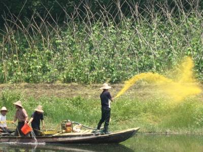 分水镇开展灭螺大行动从6月6日开始,汉川市分水镇在全镇范围内开展为期一周天的查螺、灭螺大行动,对查出的有螺点和易感地带,及时进行药物灭螺。据悉,此次灭螺行动使用灭螺药物874公斤,喷洒面积600余亩,做到灭一块、清一块、巩固一块。图为,血防工作人员正在向分水主渠两岸螺区喷洒灭螺药物。(通讯员李生磊摄)