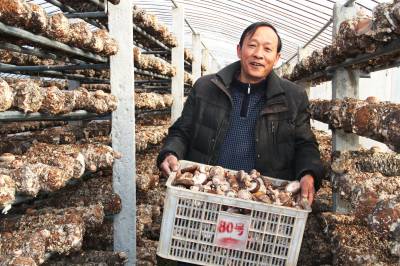 典型引领共同富 12月29日,谷城县五山镇黄山垭村食用菌种植大户姚家勤正在采摘香菇。姚家勤身残志紧。种植10万棒香菇发家后,开始帮扶20多位贫困村民。目前,该县通过各类致富能人帮扶带动、典型引领共同致富的的贫困农民已有13000多人。 视界网马明刚摄