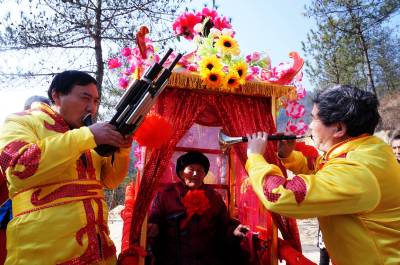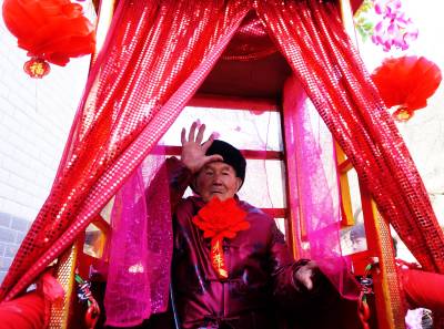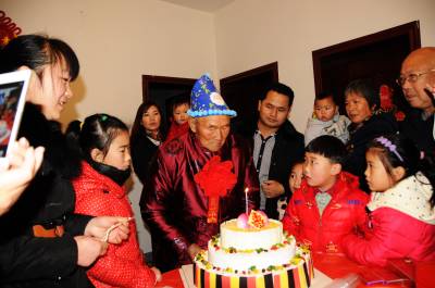 1月2日,是十堰市郧阳区柳陂镇白鹤铺村抗战老兵周泰成100岁生日,当天上午亲朋好友和众乡亲80多人为100岁抗战老兵周泰成生日送来祝福,100岁抗战老兵周泰成生日这天开心的坐上大花轿在山里转上一圈,周泰成说"他结婚时媳妇还没有坐上大花轿,活了100岁这是头一回"。