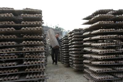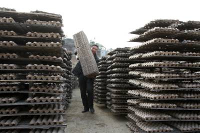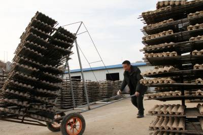 1月3日,房县红塔镇谢湾纸浆蛋托厂老板邢敦举在晾晒纸浆鸡蛋托盘。房县依托“红娘”搭桥、优惠政策激励、优化创业环境”,正确引导房县籍在外打工的农民、大学生、退役军人,返乡投资创业兴业。2015年以来,房县吸纳返乡创业者325名,投资9750万元,发展特色农副产品加工、种植、养殖、农村服务业。通过兴办的企业、专业合作社、个体工商业带动,新增城乡就业人员达5166人。