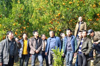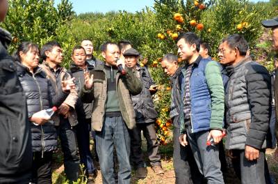 1月3日,巴东县东瀼口镇农业服务中心技术员,正在为参观学习的官渡口镇橘农讲解柑橘管理技术。