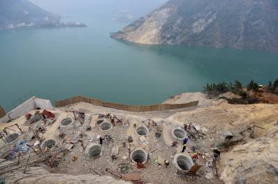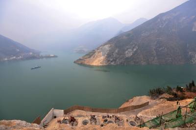 图为1月4日拍摄的香溪长江公路大桥建设施工现场。