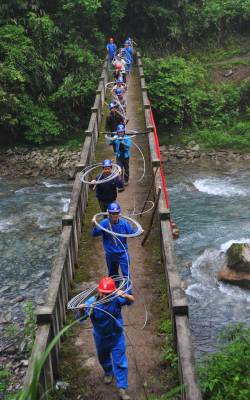 有这样一群人,不论是工作还是休息,他们胸前都佩戴着鲜红的党徽,时时处处亮出身份,为他人作出表率;在峡谷的抢险现场,在深山中的施工工地,都有一面”党员突击队”旗帜在飘扬,时时刻刻严格要求自己,争做先锋。他们数年如一日,爱岗敬业,帮困济贫,从来没有周末休息的概念,但他们从来没有抱怨,没有懈怠,用自己的辛勤汗水默默地守护着光明、温暖的动力生命线――电力线路。在第89个党的生日来临之际,记者者来到宣恩县,走近了这个奋战在深山里的党员突击队。6月5日清晨5:30分,在宣恩县河源电站,宣恩县电力公司党员突击队53岁的老党员唐宏万早早地起床,拿起电话协调施工材料购买与运输的事情。尽管他所在的工地两岸绝壁耸峙,峡谷幽深,溪流湍急,原始森林茂密,施工难度极大,甚至连吃饭与喝水都成了难事,许多年轻人也吃不消,但他每天坚持奔波于各个作业点,检查质量、监督安全、掌握进度,从不间断,虽然他家就在沙道集镇,自施工以来就没回过。80后员工鄢世民动情地说:”老唐确实让我感动,他的敬业对我们年轻人是一种鞭策。”其实党员唐宏万只是该公司党员突击队的一个缩影,该县电力线路的架设、巡查、维护,全靠该公司9支党员突击队。”我们算过,巡1公里线路平均要走5公里的山路。”党员突击队员王祥轩说。大部分高压线沿路是悬崖峭壁,林海茫茫,无路通行。巡线回来衣服让刺挂得到处是破洞,”巡线下山就成了‘乞丐’。”除了公司发的工装外,他们每年要自配4套迷彩服才够穿,解放鞋更是成箱的采购。饿了,啃一只工具包里的干馒头,或者冷水泡快餐面充饥。渴了,掬一捧山涧里的冷泉水。”电与生产生活分不开,所以我们的工作不分白天和黑夜。”全州劳动模范、党员张正炎说。”除了计划性工作外,因故障、天气原因临时安排的特巡和抢修没有规律,哪怕是三更半夜,随时都要有出发去工作的思想准备。”冬日,刺骨的寒风将铁塔上作业的他们吹得失去了知觉,裤腿和工具扳手紧紧的冻在铁塔上,扳都扳不掉。夏天,毒辣的太阳将铁塔炙烤到五十多度,要是不戴手套作业,即使是起了老茧的手也会被烫起水泡,身上的工作服汗水浸湿,又被毒辣的太阳烤干,一日数次,衣服上留下一圈又一圈白色的盐渍。工作虽然辛苦,但”党员”这个光荣的名称让他们有着源源不断的动力。在党员突击队中,很多人仅靠一千余元工资来养家糊口,但他们永远是那样积极、乐观,日复一日的重复着他们的工作,巡线路,排故障,抢险救灾,永远冲在最前面。党员突击队的旗帜飘扬在哪,他们的身影就出现哪。党员是他们荣耀的是身份,党徵是他们是生命的名片。(视界网杨顺丕张小燕杨志英)