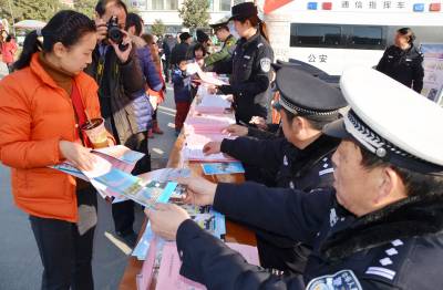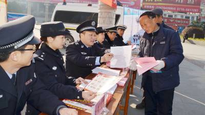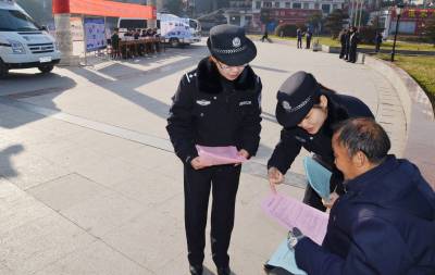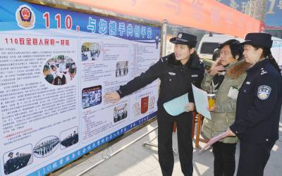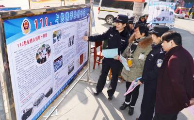 1月6日,保康县公安局民警正在该县紫薇广场开展110宣传活动。 遇有危险如何求助110?1月10日全国第30个110宣传日来临之际,保康县公安局组织民警上街道、下社区、进广场,以设置110咨询台、发放110宣传单、现场答疑解惑等方式,开展“群众的110,你我的30年”主题宣传活动,民警面对面向群众宣传30年来110在打击犯罪、解危救困、维护治安等方面发挥的重要作用与成效,进而增进人民群众对公安工作的理解与支持。(视界网 欧阳智慧 摄)