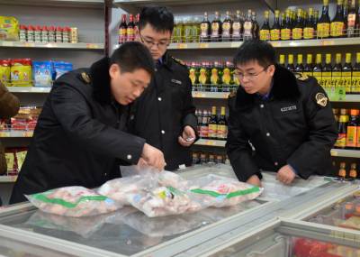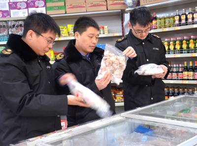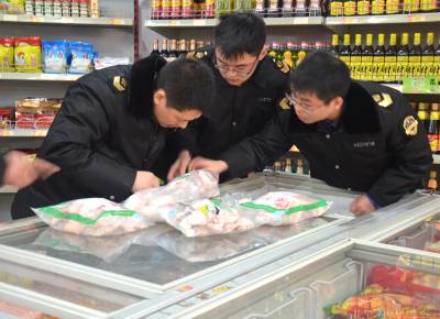 1月7日,巴东县官渡口镇食药所工作员正在集镇一家超市检查冷冻肉。 为切实保障春节期间广大人民群众吃上“放心肉”,当天,恩施州州、县、乡镇食药监管部门联动,对所辖的冷冻肉批发商冻库、专卖店冻库、大型超市及餐馆肉制品专柜的冷冻肉进行全面清理检查,查清来源,查证检验检疫证明,查实有无走私不合格肉品等情况。检查结果于本月11日前上报州局食品稽查分局。( 向传辉摄 住址 巴东县官渡口镇政府 电话 18963928551)