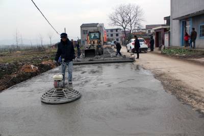 1月9日,黄梅县杉木乡组织施工人员在硬化拓宽后的土桥至桂畈道路。入冬以来,该乡抢抓农闲时节,积极筹集资金,全面改善道路基础设施,着力改善群众出行条件。目前,总投入700余万元的4条全长20多公里、宽8米的乡内主干道加宽硬化工程正在紧锣密鼓地施工中,春节前可基本实现整体竣工。同时,自筹资金200多万元启动染铺、安乐两座大桥建设,有望在今年8月建成投入使用。(视界网 吴志雄 摄)