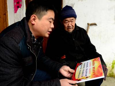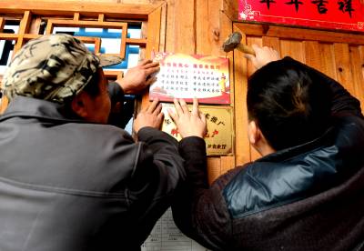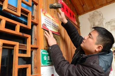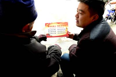 元月10日,来凤县革勒车镇党委负责人将《党性在我心,落实在我行》的党员家庭标志牌贴作为特殊“礼品”送到老党员张朝忠家里。