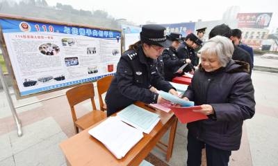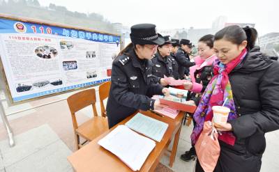 1月10日,保康县公安局民警正在该县紫薇广场向市民宣讲有关110知识。连日来,保康警方组织民警上街道、进广场、入社区,以设置110咨询台、发放110宣传单、现场答疑解惑等方式,开展“群众的110,你我的30年”主题宣传活动,民警面对面向群众宣传30年来110在打击犯罪、解危救困、维护治安等方面发挥的重要作用与成效,进而增进人民群众对公安工作的理解与支持。(视界网 欧阳智慧 摄)