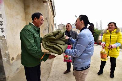 7日,云梦团县委和沙河乡李店社区的党员干部为祠堂湾贫困老党员、独居老人张火金送去了棉被、大米、食用油等爱心物资,让张大爷感动不已。据了解,今年64岁的张大爷是退伍军人、老党员,最早响应计划生育政策,只生了一个女儿,早已出嫁,老伴去世40年,他一个人独居,没有劳力。团县委和社区把他纳入精准扶贫对象,对其给予鼓励与关爱。 (视界网 王云清 摄)