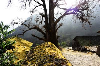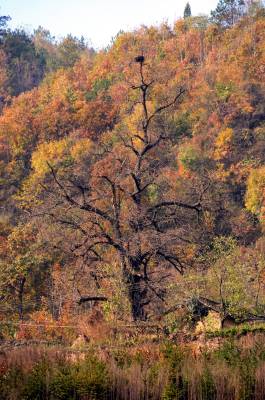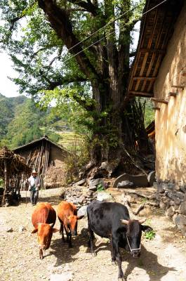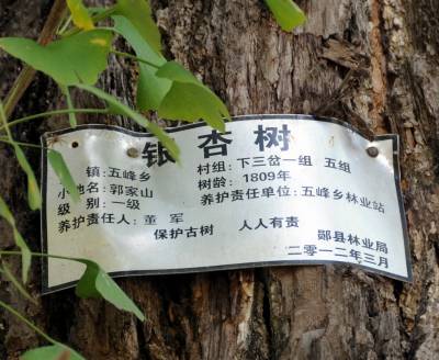 银杏树出现在几亿年前,被誉为活化石,由于分雄性和雌性,村民们称其为公树和母树,公树不结果,母树结果,公母区分以长奶头的为母树。在十堰市郧阳区五峰乡郭家山村下三岔一组和五组的结合部就有一棵古银杏树,这棵1809年古银杏树己被挂牌保护。古银杏树高25米,胸围9.30米,胸径3.70米,树冠23米。此树应为雄雌双株合抱生长,每年结果2000多斤,许多外地林业部门秋季来此取果种植。 视界网周家山 王燕摄