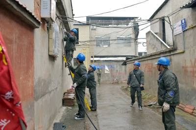 1月12日,老河口市降下2016年第一场雪。当天上午,在该市童营村5组,来自老河口市供电公司客户服务中心的施工人员正在更换下火电缆,积极应对冬季用电负荷增长,保障群众度冬可靠用电。