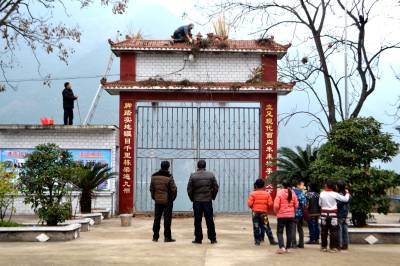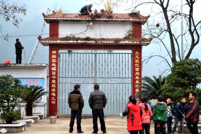 【六城同创】向卫生“死角”宣战 13日,巴东县官渡口镇东坡小学老师清理校门上的杂草。 为有力推进六城同创,该校利用晴好天气,组织教师架云梯,腰系保险绳,手拿小挖锄,清理校门上杂草,确保校园无卫生死角,树良好形象。(视界网向国大摄)巴东县官渡镇东坡小学