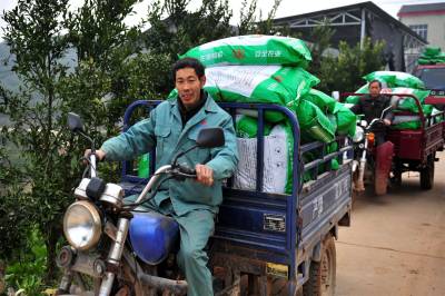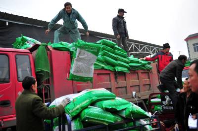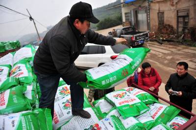 2016年1月13日,宜昌市夷陵区星翔农产品专业合作社联合社以补贴形式向社员派发农资“福利”活动启动,首批分发生物有机肥500吨。该联合社为调动社员种植“夷陵红”生态品牌柑橘的积极性,今年由社员自愿申报农资产品需求量后,统一从生产厂家直购生物有机肥,并按量给予社员61.54%的费用补贴。今冬明春,联社计划共派发生物有机肥800吨,所辖4村8场5618户社员的橘园实现生态种植全覆盖。视界网 张国荣 摄