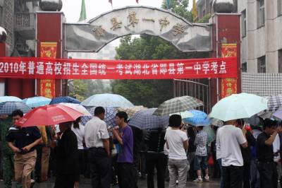 6月7日,湖北郧县参加高考学生正冒雨走进考场。当天全国普通高考拉开序幕,郧县3911名学子参加考试。在残酷的竞争中,学生、家长、老师都压力重重,然而天公作美,连日中雨为考生们进行心理降温,给考生们带来了一个清凉夏日。(湖北郧县教育局张俊忠宏摄影报道邮编442500电话13294212877)