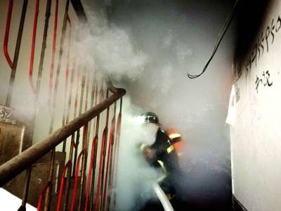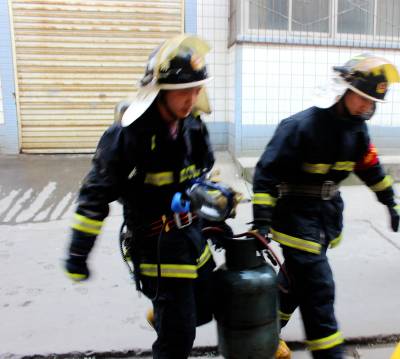 在到达事发地点后,现场指挥员发现,由于失火住宅楼位于偏僻狭窄的巷子内部,着火居民楼距离消防车停靠地点约有200米距离,消防车无法驶入。现场指挥员当机立断,要求后方供水员加强力量,迅速铺设百米消防水带。此时着火居民楼二楼窗户正向外肆虐地喷着火舌,且烟雾较大,据报警人称,还有两个充满的液化气瓶在厨房内部,如不及时处置,后果不堪设想。