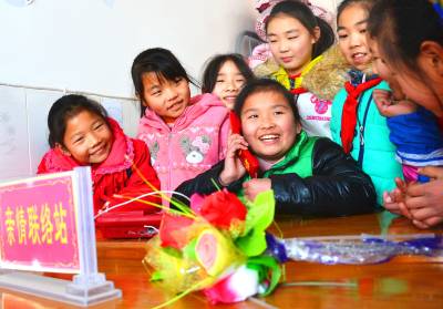 “我快放寒假了!爸爸妈妈,什么时候回家呀?”春节临近,郧阳区各学校和托管机构都安装了供留守儿童免费拨打的“亲情电话”、“视屏聊天”、“WiFi微信”,孩子们可以随时跟在外打工的父母“千里连线”,说说心里话,传递思亲之情和新年愿望;家长也将切切牵挂和回家过年日程通过电话、视屏、微信传达给孩子,让孩子们与爸妈“提前”“团圆”,“千里”共温暖。