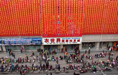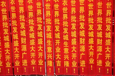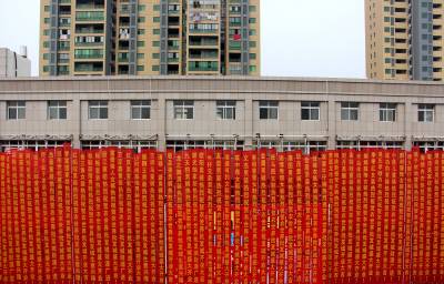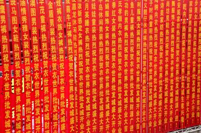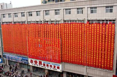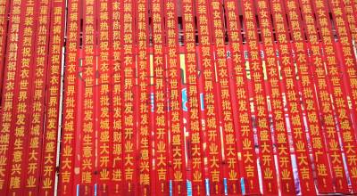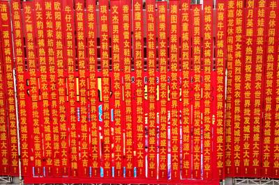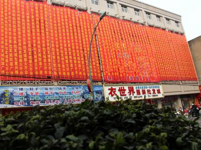 云梦县一家企业开业,条幅一片红,铺天盖地,红红火火,蔚为壮观。2016年1月14日拍摄。
