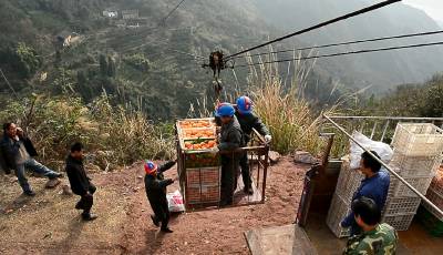 家住秭归县水田坝乡青蒿峪村二组的胡学平老人,今年已经62岁。饱受柑橘运输之苦后,今年自己出资5万多元,在悬崖上架起了一条索道来解决困扰当地多年的柑橘运输难题。过去,由于大山阻隔,胡老汉及当地村民的300多亩900吨柑橘全部需要肩挑背扛才能出山销售,每年的运输成本高达40多万元,占脐橙销售收入的3分之一。昂贵的人工运输成本成为胡老汉及村民致富的障碍。这个索道架起后,每天可运输近2万斤脐橙,运输成本不到400元,全村脐橙运输费用只需要4万多元,仅相当过去人工搬运费用的十分之一。