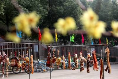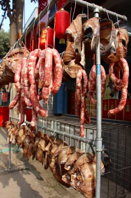 2016年1月15日,天气晴好,腊梅花开,云梦县城区居民乘着晴好天气晾晒腊肉、腊肉、香肠等年货,迎接农历新年猴年的到来。腌制、晾晒腊肉、腊肉、香肠等年货,是湖北孝感一代民众多年的民间习俗。每到腊月,城乡居民纷纷腌制鱼肉等年货。这些腊肉、腊肉、香肠经过腌制、晾晒后,风味独特,是当地群众喜爱的春节地方传统食品之一。 本报视界网 陈保忠 摄
