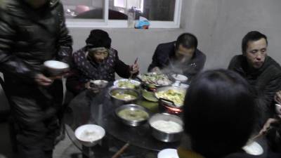 我们把带来的蛋糕、阴米子和白糖给与老人,一下子拉近了咱们之间的距离,老人家觉得我们亲和近人,欢喜地接受了我们这些逺道而来的客人,她边吃蛋糕边看电视边与我们聊天,在孙娃尹刚的开导下,老人家并不时地回答我们提出的问题。如问她您是哪年生的?解放前是怎么嫁到尹家来的,那时家境情况如何等等?老人家的眼力、听力、记忆力较好,对往事记忆犹新,历历在目。