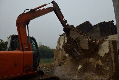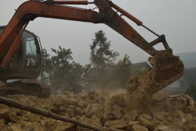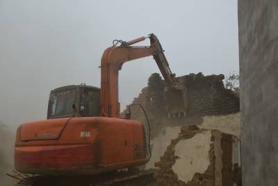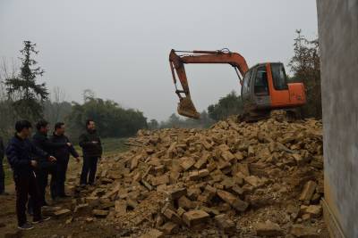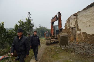 推掉旧房建新房 1月18日,宜都市枝城镇何阳店村一组王平哲旧房前,大型挖掘机将旧房推倒,准备重建新房。王平哲是在册贫困户,在村进行农田整治的工程承包人钟伟得知王平哲要建新房,主动提出免费帮助推旧房,并负责将屋场平整好。