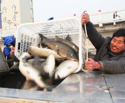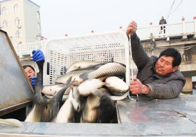 “绿色鱼”游进大市场 1月17日,冷集镇李洲村农民正在捕获、销售刚起网的“绿色鱼”。去年谷城县供电公司加大农村配网改造投资力度,全县238个村庄高低压线路得到改造。线径细、供电半径不足问题得到很好解决。电没了“卡口”,该县农民养殖的近4万亩“绿色鱼”产量翻番,收入倍增,“绿色鱼”游进大市场。 视界网马明刚摄