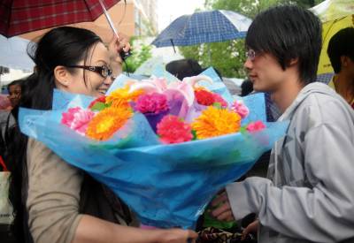2010年高考结束8日,全国普通高校2010年高考胜利结束。黄石市2万多名应届高中生参加了考试,今年高考考生比去年减少近千人,是该市考生首次下降。图一:詹艳萍女士特地买来鲜花献给刚出考场的儿子,祝贺他高考成功。她远在西安打工,这次专程请假回黄石陪儿子高考。她说,不管儿子考得怎样,她都会开心,因为儿子长大了。图二:一名出考场的女学生路出开心地笑脸。图三:一位70多岁的老奶奶在考点外手举雨伞,焦急地等待考完试的孙女。黄石市黄石日报摄影部邱孝威摄电话:13807232603邮编:435002
