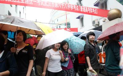 2010年6月8日下午,武汉是第六十八中学考点,考生结束了最后一场高考科目,满面笑容地走出考场。(记者柯皓实习生周煌摄)