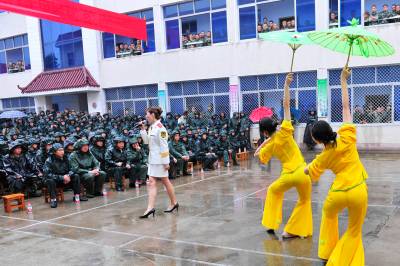 雨中演出情更深6月7日,武警湖北总队业余演出队的演员们,按计划来到偏远的训练基地,为官兵们进行慰问演出。没想到当天下午下起了瓢泼大雨,但演员们照常演出,现场气氛异常活跃,赢得官兵们阵阵掌声。整场演出最后还增演了半小时。谢定安摄