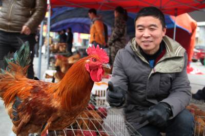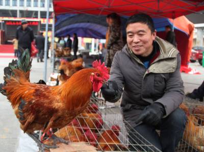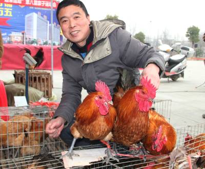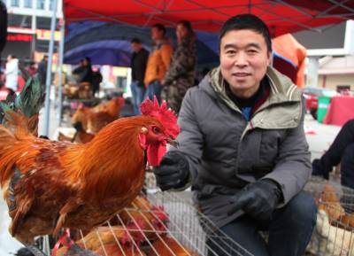 土公鸡卖出好价钱 1月20日,谷城县庙滩镇农民宣绍贵正在集市上土生土长的大红公鸡。宣绍贵盯住城乡居民偏爱生态土鸡、眷恋“乡愁”心理,在林地开始养起了土鸡。每公斤30元的土鸡,也让宣绍贵赚到了比在外打工多的钱。 视界网马明刚摄