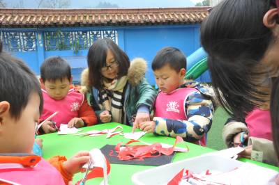 1月21日,鹤峰县容美镇中心幼儿园的萌娃们在老师的指导下,剪出一个个“金猴”。 当日,该园开展猴年剪纸迎新春活动,让孩子们通过小巧手,画、剪“金猴”和“窗花”,体验剪纸带来的乐趣,感受传统工艺的魅力,了解民间传统文化,也给中国传统春节添了很多“年味儿”。