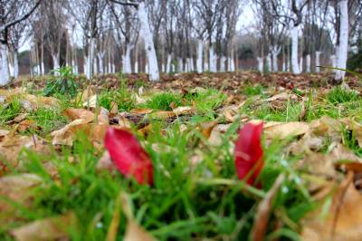 2016年01月21日,云梦县一家生态园雪后呈现出勃勃生机。当日,一场小雪洒满云梦大地,积雪慢慢化去,潮湿寒冷的大地上,洒落的红叶、黄叶,迎寒生长的小草绿叶,零星的白雪,呈现出冬日的别样风景,展现出勃勃生机。