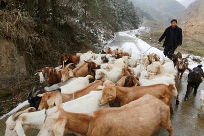 1月21日,竹山县麻家渡镇龙兴村二组养殖大户黄朝阳正在散养山羊。龙兴村有690人,精准识别扶贫对象400人。该村依托山场面积大,有得天独厚的畜牧养殖条件,探索出“龙头企业+基地+专业合作社+农户”的运作模式,走“产、供、销一体化”的发展路子,大力发展规模养殖。2016年底,全村养牛规模达到350头,养羊规模超过3000只,人均增收3000元,实现整村脱贫的目标。