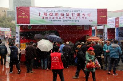 1月22日,2016第二届秦巴片区农特产交易博览会在十堰市人民广场举行。尽管早上下雪气温降低不少,仍然挡不住众多市民购买年货的热情。农历新年将至,农特产品交易博览会吸引了众多市民前来观展购物,置办年货。