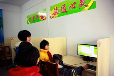 千里传音 沟通心灵 22日,在巴东县官渡口镇中心小学亲情小屋,该校学生向辉正在用QQ与远在外地务工的爸爸报告期末考试成绩。据悉,为拉近山区留守儿童与父母之间的距离,享受亲情温暖,该校在校内的值班室安装了免费亲情电话,建起了留守儿童亲情屋,定期和不定期让孩子用电话或电脑登QQ与父母间千里传音,为他们与家人心灵沟通提供方便。 (视界网穆世祝 摄)巴东县官渡口镇中心学校(444309)15335850858