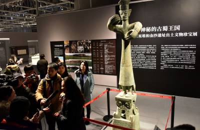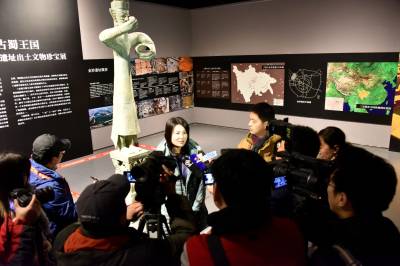 1月22日,湖北省武汉市在武汉园博园中心场馆长江文明馆内,举办了《神秘的古蜀王国——三星堆和金沙遗址出土文物珍宝展》开幕式。