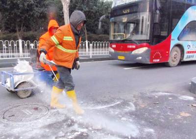 > 撒盐化路水结冰 方便车辆百姓行