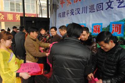 1月13日,汉川市麻河镇将“平安汉川中国梦巡回演出活动”与卫生计生“三下乡”活动有机结合起来,在镇人口文化广场上,演出由群众参与的宣传卫生计生政策法规的文艺节目,用自己人演身边的事,用身边的事教育广大群众,收到良好的普法宣传效果。 签约摄影师 邹开建 摄 通联:汉川市卫计局 电话:13197382491 邮编:431600