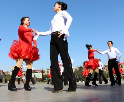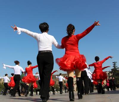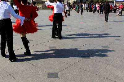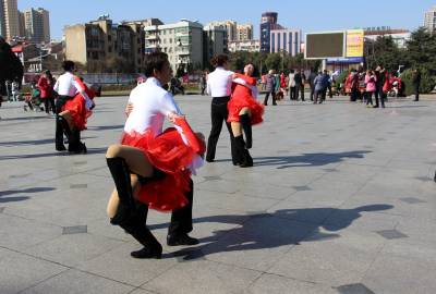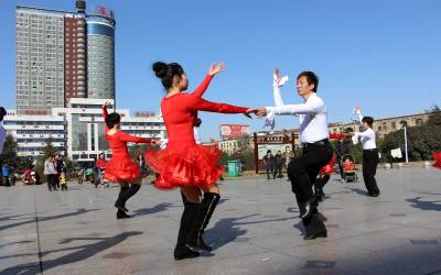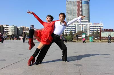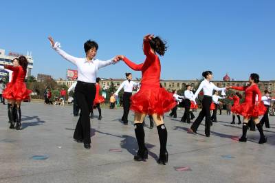 2016年01月24日,众多市民在云梦县政府广场迎着难得的冬日暖阳跳舞锻炼。眼下正是寒冬,24日云梦雪后冬阳高照,但气温依然寒冷,当日温度低至1度至零下六度,人们依然走出家门,在广场翩翩起舞,红裙子、白衬衫、轻舞姿,在阳光下相映成趣,冬日广场舞好似一团团跳动燃烧的火苗,给人们带来愉悦和温暖。