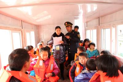 过平安渡 坐放心船 1月25日,竹山县海事局工作人员正在该县上庸镇北坝村渡口,与学校老师一起清点过渡学生人数。春运期间,竹山县海事局针对群众返乡、拜年、旅游、回程四个重点时段,打好现场监管与主动服务的组合拳,通过短信、微信、微博、网站等多样化平台及时播发辖区天气、水况、船舶动态等便民信息,让群众过平安渡,坐放心船。(视界网 章磊 摄)