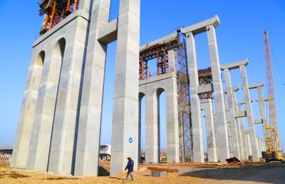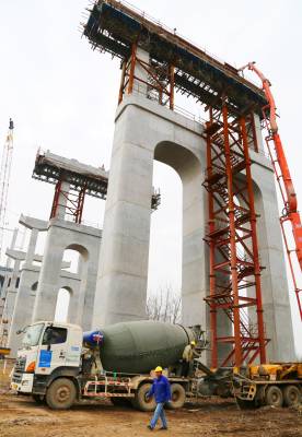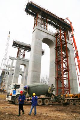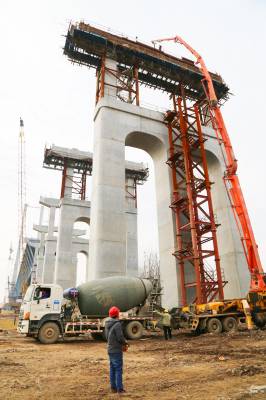 蒙华铁路荆州长江公铁两用特大桥全长6317.822米,其中南、北岸合建段长788.8米,共24个桥墩。工人们精心施工,克服了公路桥墩高,天气严寒等施工困难,确保了大桥公铁合建段墩身施工如期完成,为下一步架设公路箱梁奠定了良好的基础。