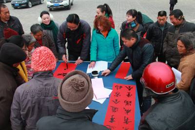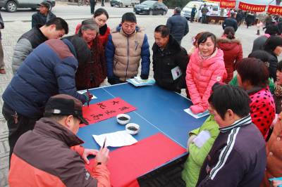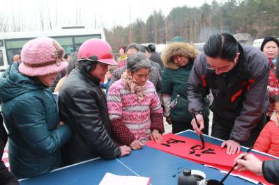 当日,湖北省十堰市郧阳区欢乐祥和过大年·喜气洋洋奔小康——2016年文化、科技、卫生“三下乡”慰问演出团走进茶店镇樱桃沟村,为农民朋友们送去了文艺节目、医疗知识、致富信息等“文化年货”。(视界网 曹忠宏 摄)