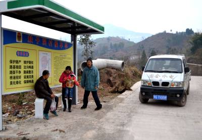 乡村有了候车厅 27日,巴东县官渡口镇麸子洞村新建的候车厅里,村民正等候上车。 去年该村争取国家土地整治财政资金15万元,修通断头公路2.5公路,并在人口集中路段建起候车厅,为村民出行等车遮风挡雨。据悉,该村的断头路今年已纳入全镇水泥路浇筑项目,当地5个组700多村民在新年里将彻底告别出行难。(视界网向国大摄)巴东县官渡口镇东坡小学
