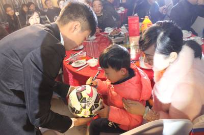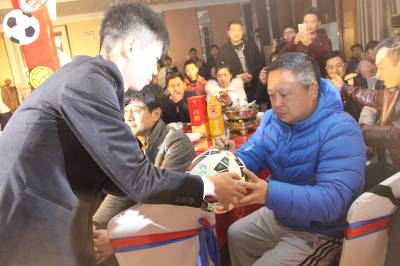 1月27日,十堰市足协张冰和杨柳在市巨能宾馆举行足球婚礼。婚礼中使用了八届世界杯的主题曲作为背景音乐,现场,我市足球爱好者纷纷在新人足球上签名留念。在浪漫告白环节,小球童为新人们送来了足球,新娘将口哨交给新郎,答应新郎要听从指挥,陪新郎看一辈子足球,而新郎则将黄牌红牌交给新娘,答应今后更加疼爱妻子,有错就改,该罚认罚。举办此次婚礼,是出于新人们的“足球情结”。十堰日报记者齐海燕