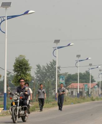 京山县桥河村是全省新农村建设示范村,该村用发展的眼光,用环保、低碳的理念,超前为全村的通村公路上安装了环保节能的太阳能路灯,让村民出行更加方便了。张文胜 摄