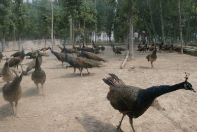在京山县钱场镇有一个孔雀养殖园,2000多只蓝孔雀、白孔雀纷纷开屏,争芳斗艳,既有较高经济价值又有很高观赏价值的孔雀吸引了很多高端客户及观鸟爱好者。张文胜 摄