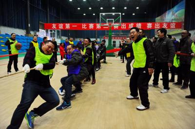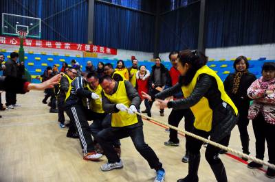 1月27日,国网巴东县供电公司迎春趣味运动会在职工活动中心举行,来自公司机关、调度控制分中心、运维部等单位百余职工参加了拔河、篮球、两人三足等趣味运动比赛。 此活动旨在益智健身、弘扬正气、凝心聚力、促进交流、增进友谊,喜迎2016年新春佳节到来。(视界网王祖满摄 15272999779)