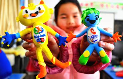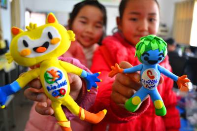 1月30日,小学生用彩色橡皮泥塑捏出第31届里约奥运会和残奥会的吉祥物“文尼修斯”和“汤姆”。当日,湖北省十堰市郧阳区柳陂镇乡村少年宫里的小学生,在老师和志愿者指导下,用彩色橡皮泥塑捏出第31届2016里约奥运会和残奥会的吉祥物“文尼修斯(Vinicius)”和“汤姆(Tom)”,萌态可掬,准备当作奥运新年的“吉祥摆件”,以表达对奥运的热爱和新春佳节的祝福。