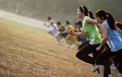 高考结束了,紧张的心情终于得到了放松,京山的高考学生们纷纷走出户外,来到郊区参加各种健身活动。瞧,这群同学,她们正在奋力向高坡冲刺。