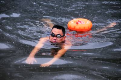 1月31日,一场风雪把进入数九寒天的艳湖公园装扮得分外妖娆。来自十堰市冬泳协会的数十位冬泳爱好者不惧冰冷的湖水,跳入艳湖公园刺骨的湖水中畅游,以“泳”斗严寒,欢歌击水的特殊方式迎接农历新年的到来。